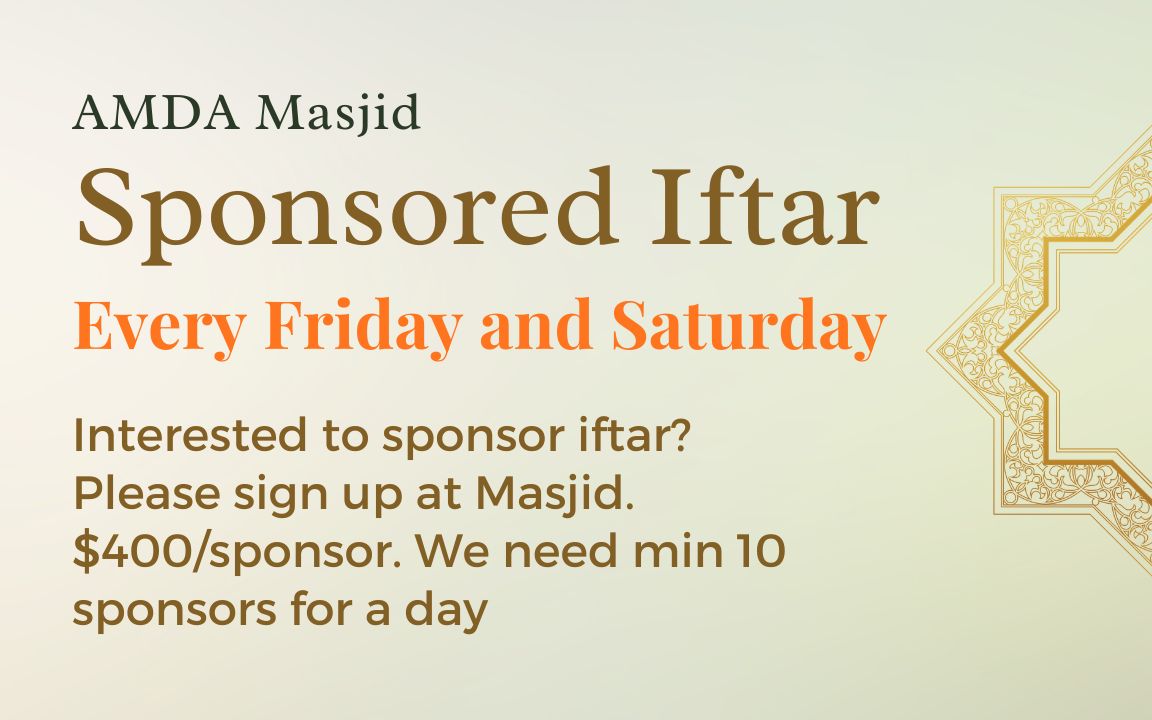 Please support the initiative to provide iftar for local underpriviliged people. Click the following link to sponsor through AMDA Masjid